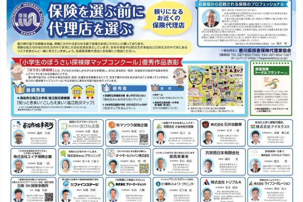 香川県代協では保険は勿論、保険にかかわるあらゆる面で皆様のお役にたちたいと願っております。保険は私たちの毎日の生活の中で非常に大切な役割を果たしています。お車の事故や自然災害の事故など日常生活の中で常にあるリスクを皆さんと一緒に考えていきましょう。